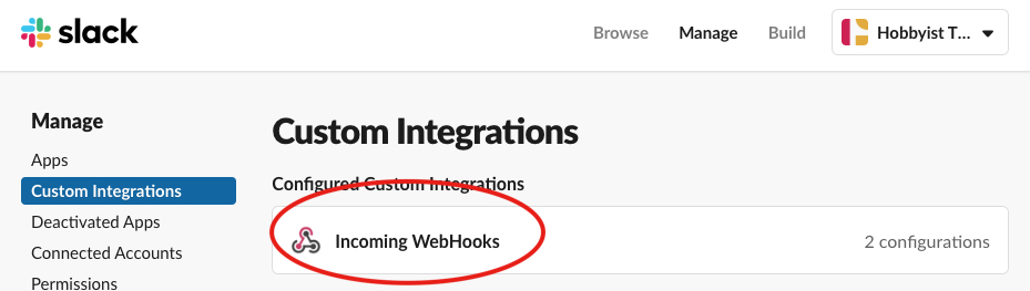 - Select 'Select a channel and click 'Add Incoming WebHooks integration'